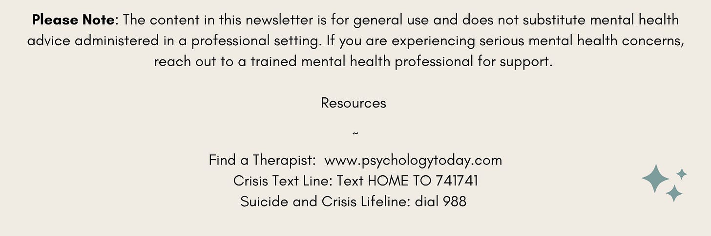The self care with sky newsletter will be coming to you every other Friday morning (ish). If you haven’t subscribed already, please do! It’s the best free way to support my writing and keep up-to-date on my reflective ramblings and poetry. And if you know someone who could use a pick-me-up, please share this newsletter with them. Cheers!